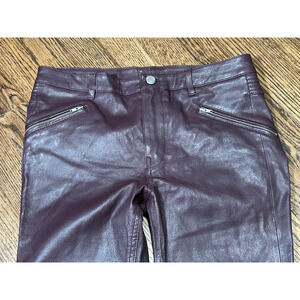 BLK DNM Women's Dark Violet Mid Rise Slim Fit Leather Skinny Ankle Pants Size 28