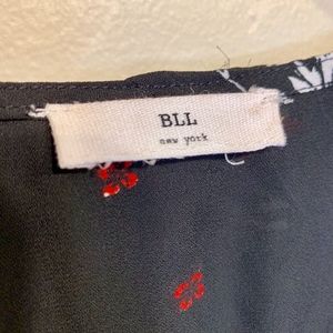 BLL New York Black Wild Flower Moody Floral Quarter Sleeve Semi Sheer Lightweight High Low Mini Dress