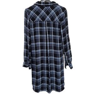 BLL Nyc Navy Blue Black plaid flannel shirt dress open duster Sm Soft