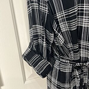 BLL Nyc Woman’s Large Black White Plaid Dress Button Front Tie Belt Pocket New