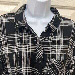 BLL Nyc Woman’s Large Black White Plaid Dress Button Front Tie Belt Pocket New