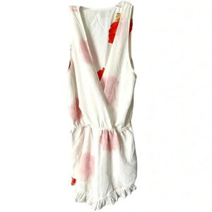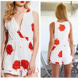 BLNK | White Red Rose Print Plugging Neck Frilled Hem Sleeveless Romper Size S