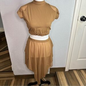 BLOCH Hanae Back Keyhole Mesh Crop Top & Mireya Handkerchief Mesh Skirt Sz M/L
