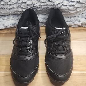 HELLO ,THESE BLOCH LEATHER STYLE TRINITY LEATHER SPLIT SOLE DANCE SNEAKERS ARE NEW ,NO FLAWS SO PUT ON YOUR DANCING, AND LETS DANCE LOL , THEY ARE BLACK LEATHER LACE UP SNEAKERS. WOMAN'S SIZE 11.0