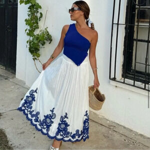 BLOGGERS FAVE NWT Zara Embroidered Scallop Hem Maxi Skirt Boho Cottagecore SZ XL