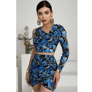 BLOGGER'S FAVE! Zara 2 Piece Mini Skirt And Top Set Blue Sz XS, Small NWT