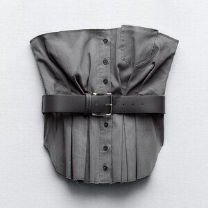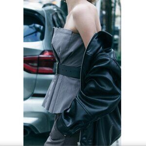 BLOGGER'S FAVE! Zara Belted Strapless Top Gray NWT