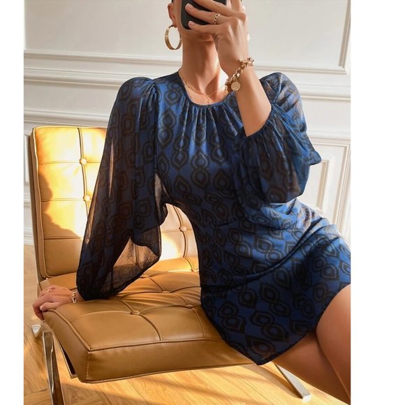 BLOGGER'S FAVE! Zara Blue Black Print Mini Dress Sz XS NWT