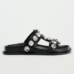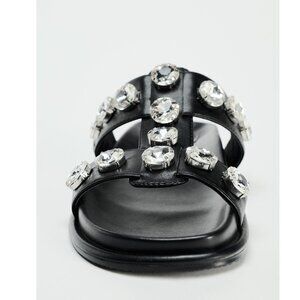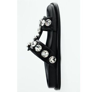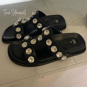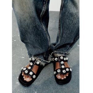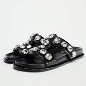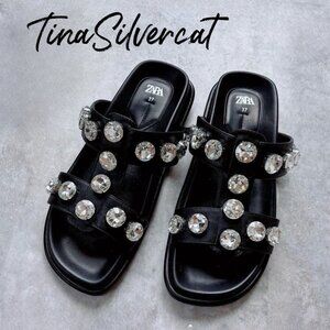 BLOGGER'S FAVE! Zara Faux Leather Gem Sandals Black NWT