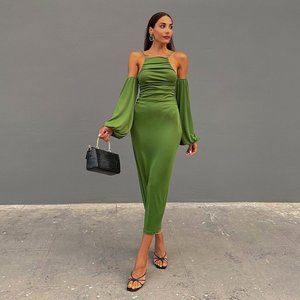 BLOGGER'S FAVE! Zara Long Dress With Gathered Details Green
