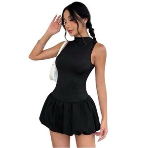 Zara Open Back Ribbed Balloon Dress in Black will have heads turning. Fitted throughout bodice, sleeveless, high neckline and flattering open back…then comes the tonal black fabric balloon at the hemline‼️ WOW, what a sexy twist 💋💄