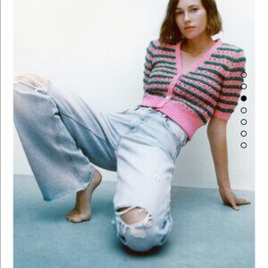 BLOGGER'S FAVE! Zara Striped Knit Jacket Button Up Sweater Pink Green NWT