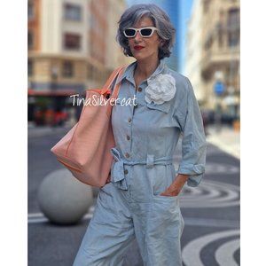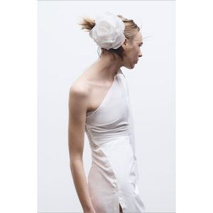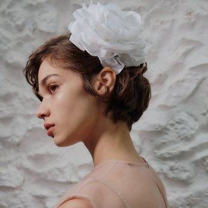 Flower-shaped brooch with textured detail. Safety pin and metal clasp closure.