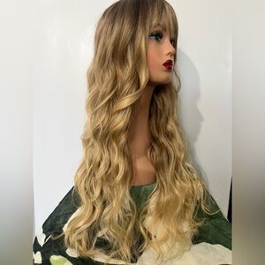 The high-quality synthetic fiber mimics natural hair’s texture and shine, making it almost indistinguishable from real hair! The wig is made with a breathable rose net cap for all-day comfort, and the 100% density offers full yet realistic volume. The loose waves hold their shape with minimal upkeep, so you get salon-quality style right out of the box. Details: • Length: 26 inches (natural mid-back length) • Style: Loose, natural-looking waves with bangs • Density: 100% for a full but realistic look • Cap: Comfortable, breathable rose net cap • Material: Premium synthetic fiber with a real hair feel Condition: Brand New