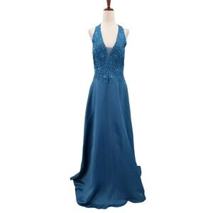 BLONDIE NITES SZ 11 juniors blue beaded slit maxi dress gown Nwt B144 *flaw