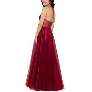 Halter neckline ties at back; Ball gown silhouette