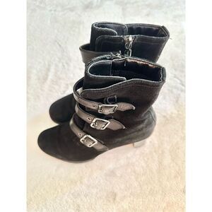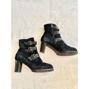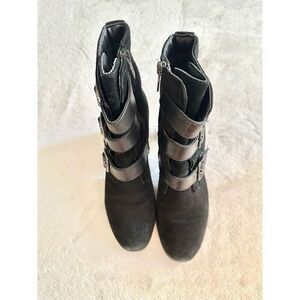 BLONDO Black Suede Leather Ripley Waterproof High Heel Buckle & Zip Bootie size 8