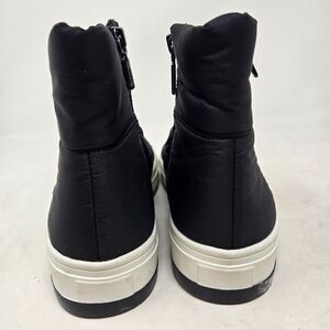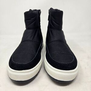 Stay warm and stylish with these black winter boots. Perfect for cold weather, these boots offer comfort and durability. Futuristic waterproof quilting and a platform serrated sole create a space-age inspired boot built for today's looks.
