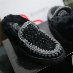 Super comfortable, cute, warm and the best part is - weatherproof! They have special coating that repels water and dirt. Very easy to clean. All rhinestones are intact. Perfect for travel! Ultra comfortable and light! In excellent condition! Purchased at Nordstrom. Originally $140.