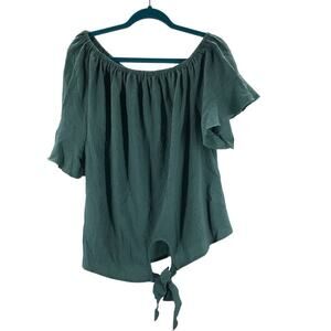 BLOOMCHIC 10 M Green Knotted Ruffle Sleeve Off Shoulder Blouse Top NWT B75