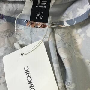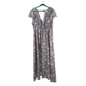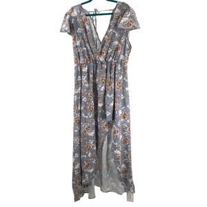 BLOOMCHIC 16 1X Plus Gray Floral Surplice Neck Elastic Waist Maxi Dress NWT b76