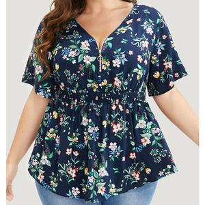 BLOOMCHIC 22-24 3X plus navy blue floral zipper elastic waist top blouse NWT B50