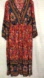 Vibrant floral patterns with a bohemian touch. Features a mix of red and blue hues. Perfect for any occasion. Long sleeve. Elastic waist.  Slit on one side of dress.
