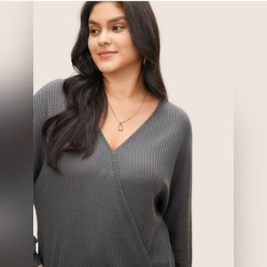 BLOOMCHIC SOLID WAFFLE KNIT WRAP LONG SLEEVE TOP WOMEN'S SIZE 4X