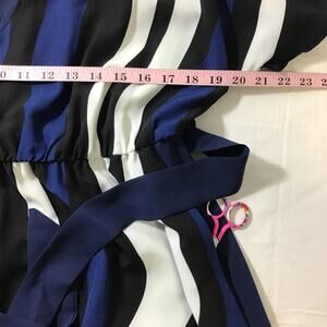 BLOOMCHIC SZ 10 L navy blue striped vneck belted short sleeve midi dress NWT B80