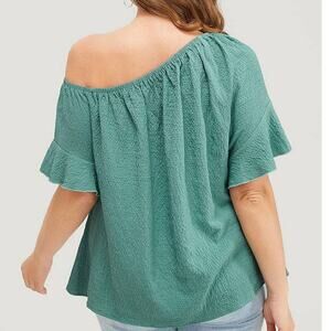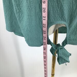 BLOOMCHIC SZ 12 L Green Solid Cut Out Knotted Hem One Shoulder Blouse NWT B95
