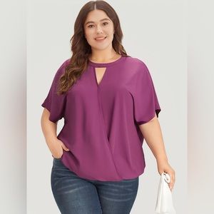 ⭐️ BLOOMCHIC Solid Keyhole Gathered Dolman Sleeve Blouse