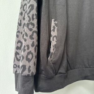 BLOOMCHIC lightweight sweatshirt with pockets, size 12, pockets trimmed with animal print and sleeves animal print, sleeve cuffs black, comfy