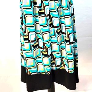 BLOOMING ROSE DRESS WITH BLACK RUFFLED LOOK COLLAR THAT RUNS COMPLETELY AROUND FRONT TO BACK. HAS A NICE WEIGHT IT WILL FLOW BEAUTIFULLY. 92%POLYESTER 8%SPANDEX. TURQUOISE BLUE GRAY WHITE BLACK LIGHT LIME GREEN.. 4in BLACK HEM. SLEEVE DROP 5.5in. CHEST 20in HIP 26in LENGTH 30in from armhole. LENGTH from SLEEVE 36in.