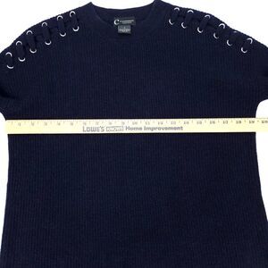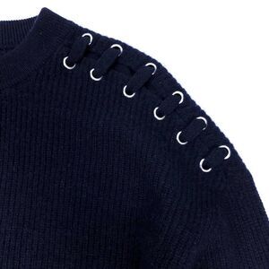 BLOOMINGDALES 100% Cashmere Ribbed Lace Up Shoulder Pullover Sweater Navy Small