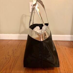 BLOOMINGDALE'S Black & Silver Vegan Shopping Tote NWT