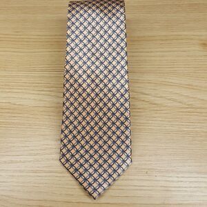 BLOOMINGDALES MENS STORE Neck Tie Orange Yellow Link Geometric 100% Silk Classic