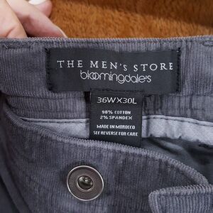 BLOOMINGDALES Mens Jeans Size 36x30 Gray Corduroy Tailored Fit Stretch Cotton
