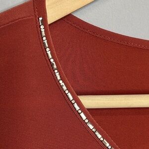 BLOSSOM BY P RUST COLORED 3/4 SLEEVED ASYMMETRICAL HANKY HEM BLOUSE SMALL