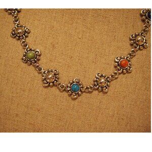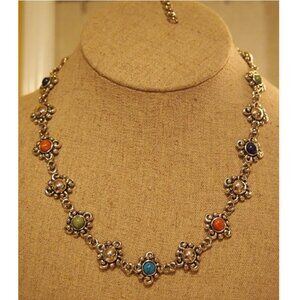 Antiqued silver plated with genuine tiger's eye/faux cabochons. It is 18 inches long with a 3 extender with a lobster claw closure. Sold new for $49. Last in the 2005 catalog page 89. Former display item in excellent condition.
