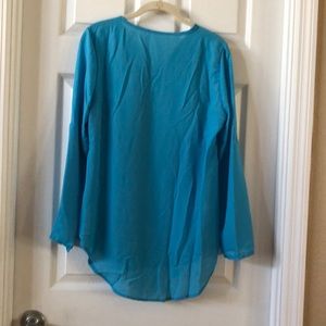 Long sleeve blouse with roll up sleeve option zipper front pull over. never worn. Turquoise