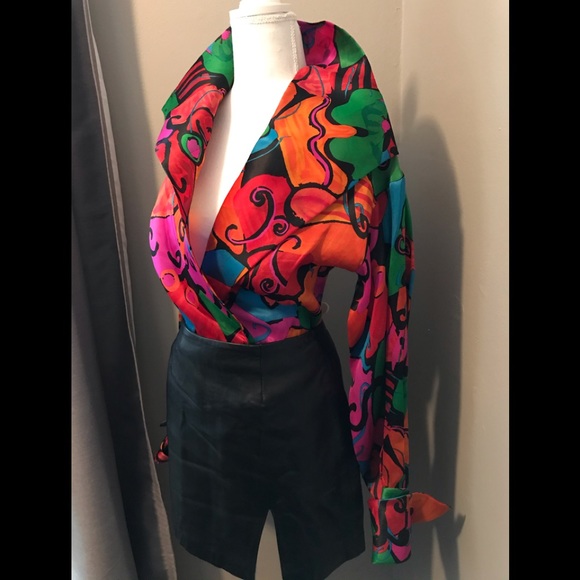 Fabulous blouse! This is the one statement piece you need, for a special event! I have it paired with a leather skirt, would also look great with dress pants. It’s a bodysuit, so no worries about the blouse coming out. The collar is amazing! The leather skirt is also available, sold separately.