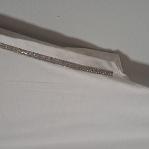Retrology Size 2x. White short sleeve blouse with bling on sleeves.Black and Golld design on front.