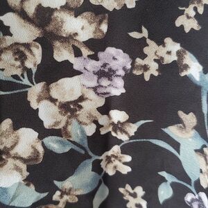 BLOUSOLOGY SLEEVELESS RUFFLE POPOVER TOP BLOUSE SIZE LARGE FLORAL FLOWY FALL BLACK PURPLE GRAY TEAL