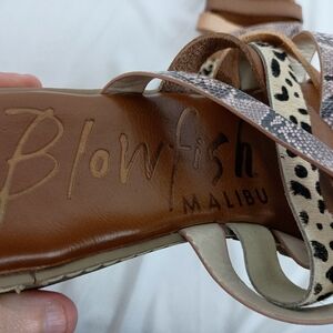 Step out in style with these Blowfish sandals. Featuring a chic combination of brown and animal print straps, these sandals are perfect for any casual outing. Enjoy comfort and fashion in one stylish package.