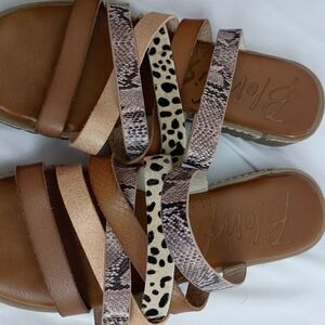BLOWFISH Women's Boho Brown and Animal Print Summer Sandals (#126)