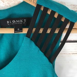 Teal body-con dress featuring cutouts down the sides and on shoulders. Stretch fabric, only worn once. Top to bottom of dress is 31"