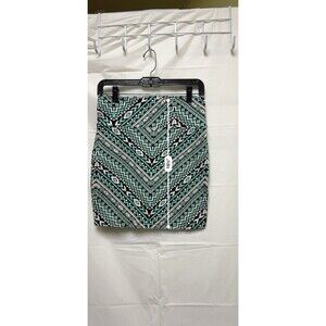 This Charlotte Russe skirt is perfect for any occasion, whether it's a party, casual outing, or workwear. The blue and white geometric pattern adds a touch of playfulness to the skirt, while the short mini length gives it a flirty and fun vibe. The skirt is made of a blend of polyester and cotton, making it comfortable to wear all day long. The skirt is designed for easy wearing and removal. It is a size medium and fits juniors perfectly. Medium Blue white BLT-A
