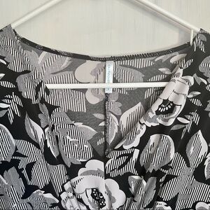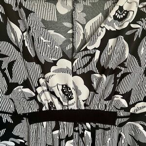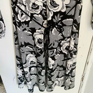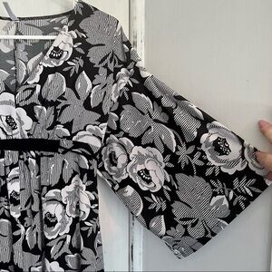 BLU Heaven Black and White Floral Empire Dress V Neck Tie at Waist Wide Sleeve M