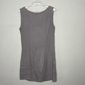 BLU ORCHID Linen Tank Dress Tan Oatmeal Cowl Neck Stretch Panels Italy Boho - S.