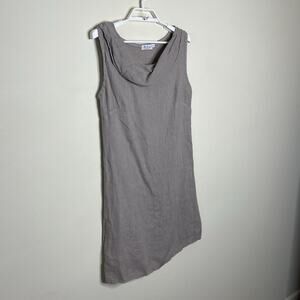 BLU ORCHID Linen Tank Dress Tan Oatmeal Cowl Neck Stretch Panels Italy Boho - S